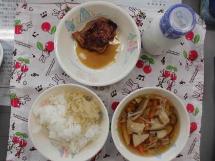 湯葉の吸いもの  照り鳥 ご飯 牛乳