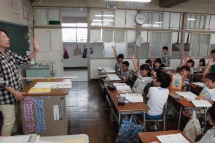 学習してきたことをもとにして一宮市を紹介する地図を作ります。店や建物が集まるところや工場が多いところ、それに、緑が多いところなど、様々なことを振り返らせました。どのような紹介地図ができるか楽しみです。