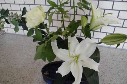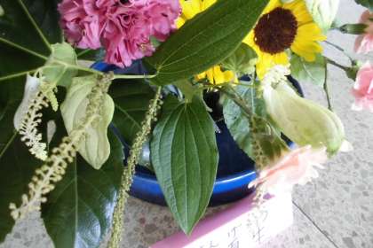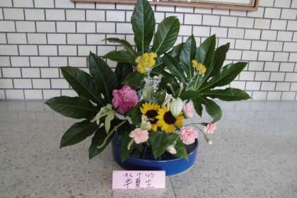 白い葉と緑の葉が一つの茎から出ている花で「半夏生(はんげしょう)」という名です。「半夏生」とは、夏至から数えて11日目にあたる日です。この時期に「カラスビシャク(漢名:半夏)」という薬草が生えることから名がつけられました。