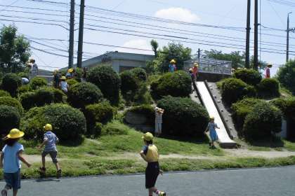 真夏日となりましたが、放課の時間になると、子どもたちは、元気に外で遊んでいます。なかよし山周辺では、2センチメートル位に成長したショウリョウバッタを見つけては、捕まえていました。