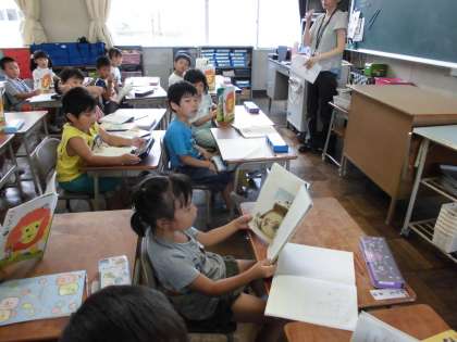 1年生は、「おむすびころりん」の学習をしました。今日は、場面や登場人物の気持ちや情景を想像して、音読練習をしました。段落ごとに表情豊かに読むことができました。みんな上手に音読することができました。