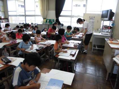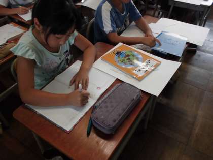 一宮市を紹介する地図を作成しました。自分が住んでいる町を紹介する文章を考え、画用紙に地図を書きました。