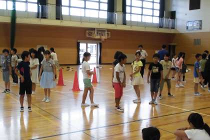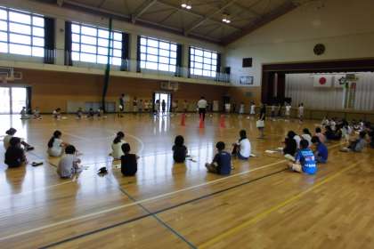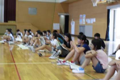 キャンプファイヤーの練習をしました。各クラスのスタンツの出し方や歌の練習をしました。みんな、楽しそうに練習していました。