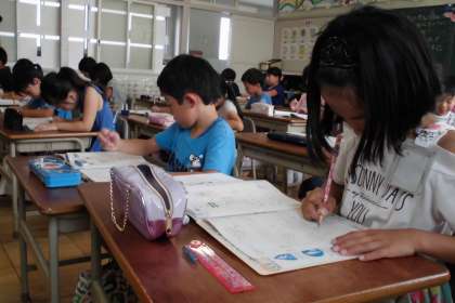 二百八は、208と書くこと、そして、365や208などを3けたの数ということを理解させました。そして、3けたの数を読んだり、漢字で書かれたものを数字で書く練習をしました。