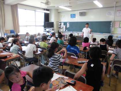 スキルタイム後の朝の会の各クラスの様子です。保健係が「健康観察」を行っています。日直が「スピーチ」をしています。先生の話を聞き、今日の日程を確認しています。一日の良いスタートが切れました。
