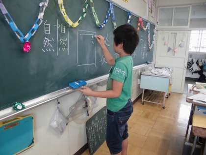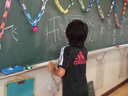 「筆順に気をつけて、字形を整えて書こう」をめあてに、丁寧に文字をバランスよく書く学習を行いました。複雑な筆順もみんなで確認し合い、代表の児童がお手本となり確実に書けるように何度も練習しました。