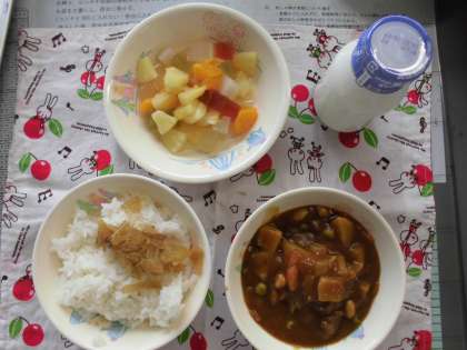 B・Bカレー フルーツカクテル ご飯 牛乳