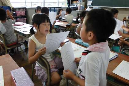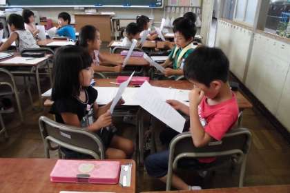 算数の授業の前には、「音読計算」を行ってます。基本的な計算を時間を決めて行う学習です。基礎基本の定着には、反復学習が効果的なので取り入れています。
