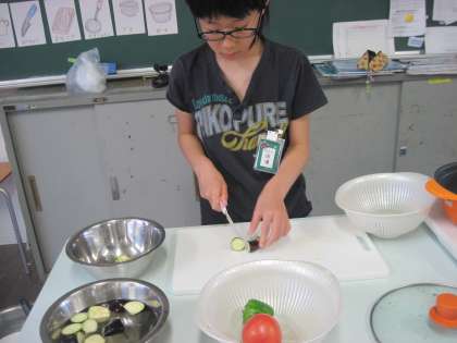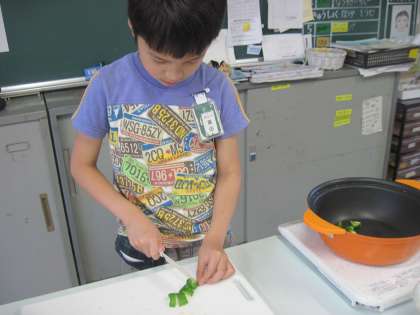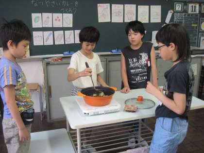 自分たちで育てた野菜を使って、夏野菜カレーをつくりました。包丁の使い方が上手になってきました。さっぱりした味のカレーができました。