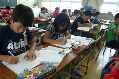 少数の仕組みについて学習しています。今日は、「42.195キロメートルは、何メートルでしょうか」という問題に挑みました。これは、40キロメートルは何メートルか、2キロメートルは、何メートルかというように、42.195を分解して考えさせました。