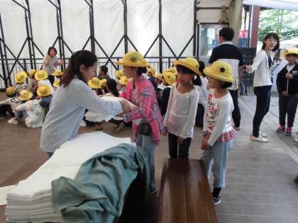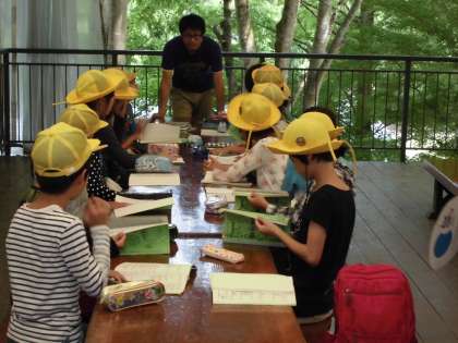 バンガローに入り、最初の班長会を行いました。また、シーツやお茶などを配布しました。