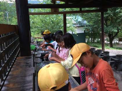 美味しくカレーの食べた後は片付けを行いました。手や顔を真っ黒にしながら一生懸命道具を洗いました。