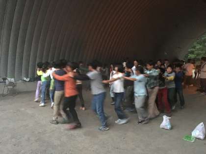 ゲームして、ダンスして、学年の仲間と一緒に楽しんでいます。