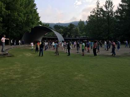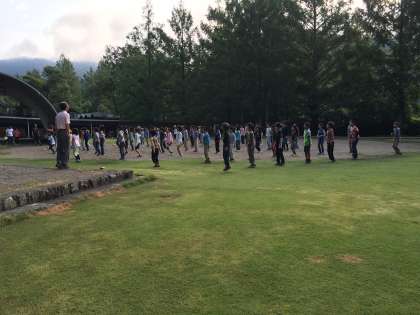 朝日を浴びて、ラジオ体操をしました。しっかり身体を伸ばして1日元気に過ごしましょう。