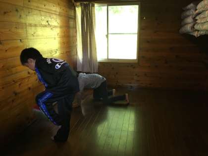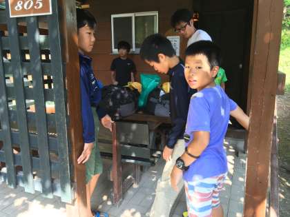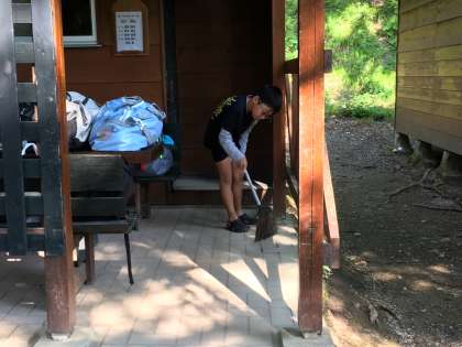 物品の返却が完了しつつあります。使用した場所を、みんなで掃除しました。先生からのチェックも受けています。