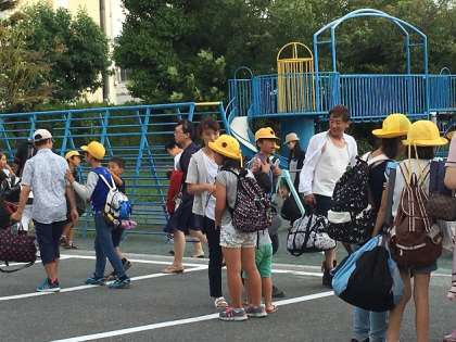 家族の方々にお迎えに来ていただき、子どもたちもほっとした表情で笑顔を浮かべていました。このキャンプの思い出を、存分に家族の方々にお話してください。本日はお出迎えありがとうございました。