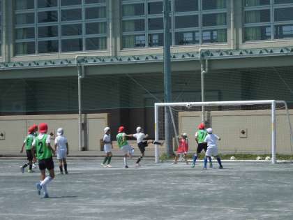 今日の午前中は、サッカー部が大志小学校と合同練習を行いました。試合形式の練習では、向山小学校が何度もゴールを決める様子が見られました。とても暑い日となりましたが、子どもたちは、体調管理に気を付けながら、一生懸命声をだし、ボールを追いかけていました。