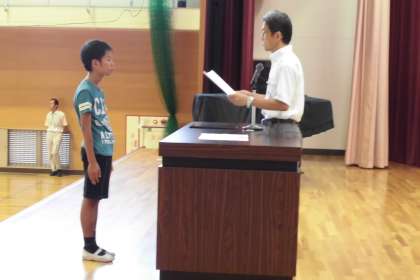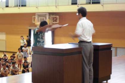 全校出校日です。全校朝礼で一宮市子ども写生大会の表彰伝達を行いました。入選・入賞した児童たちの名前が呼ばれると、大きな声で「はい!」の返事をすることができました。代表児童も、堂々とした姿勢で表彰を受け取ることができました。