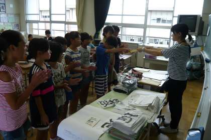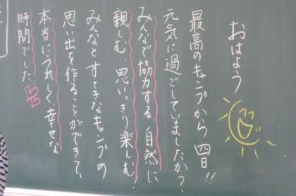 各クラスでは、写生会の表彰を行いました。入賞・入選の児童に賞状を渡しました。また、日誌の答え合わせやキャンプの思い出を話し合いました。