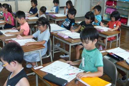 暑い日が続いていますが、子どもたちは元気に登校してくれました。夏休みの楽しい思い出やこれからのことをたくさん話してくれました。授業では、宿題の絵を集めたり、日誌の答え合わせをしました。