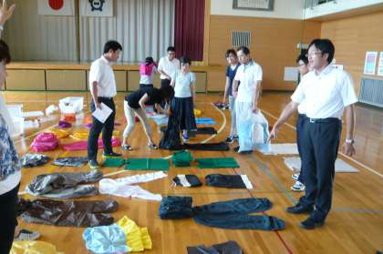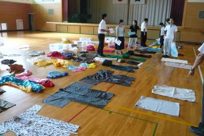 学芸会に使う衣装の検討会を行いました。今までの学芸会で使ったもので利用できるものはないか、屋内運動場にすべて広げて、各学年で話し合いながら利用できるものを取り出しました。