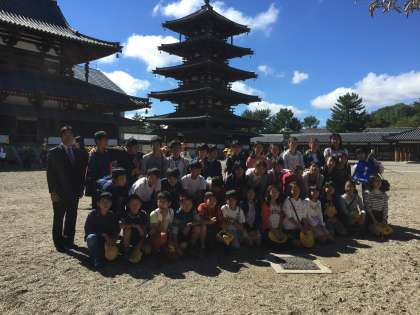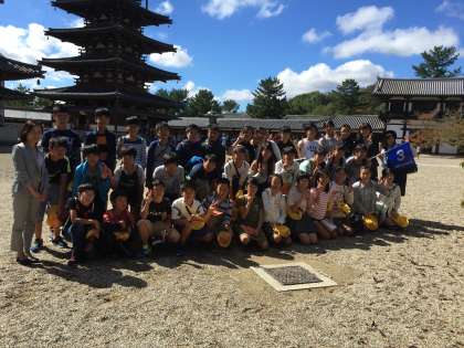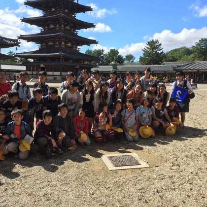 バスを降りると、まさに、秋晴れ、素晴らしい青空です。法隆寺の歴史に目も心もうばわれてしまいました。