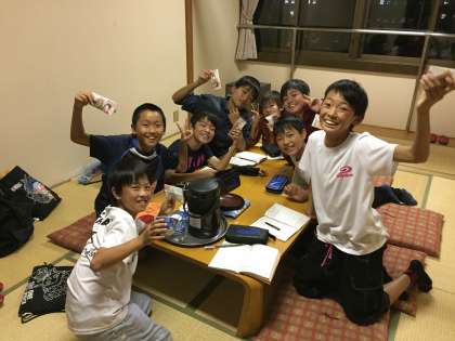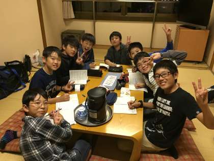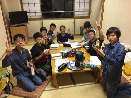 ホテル本能寺に到着しました。各部屋では、小遣い帳を書き、用意されていたお菓子をいただきました。楽しい時間が始まります。