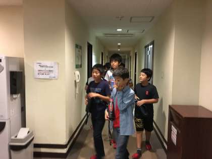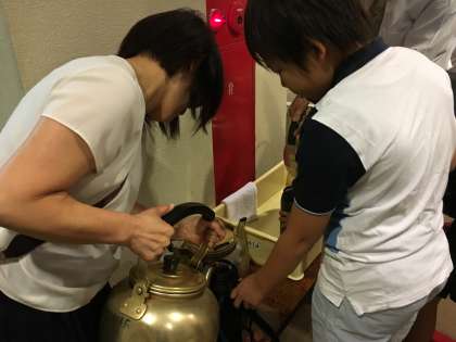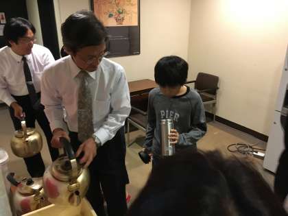 2日目の朝です。児童たちはみんな元気です。男子も水筒にお茶を入れてもらいました。