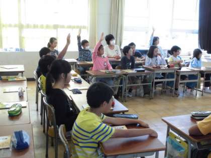 母の話を聞いたときの主人公の気持ちに触れることで、働くことの大切さや意味について考えました。みんな、とても積極的に意見を発表し合いました。