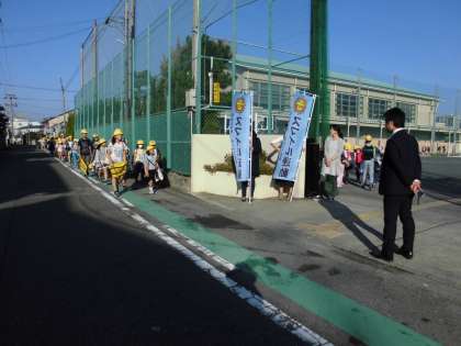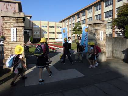 9月1日から始まりました「あいさつ運動」も今学期3回目となりました。PTA学級委員の方々に本校正門・南門にて「PTAあいさつ運動」を取り組んでいただきました。定期的にあいさつ運動を行うことで、子どもたちとのあいさつの習慣化を図るとともに、地域で子どもたちを見守る一助とすことが目的です。今日も、元気な「おはようございます」が小学校のグランドに響きました。参加していただきまして保護者の皆様、ありがとうございました。