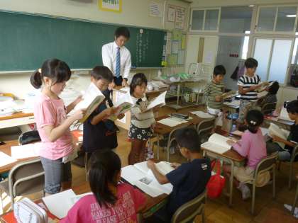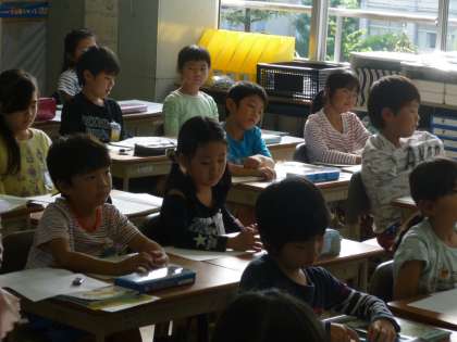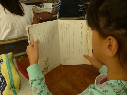 国語では、「ちいちゃんのかげおくり」の学習を進めています。今日は、場面の様子を想像しながら読みました。悲しい場面もありますが、子どもたちには、家族や命などについて、考えさせることができる教材です。人物の気持ちや場面の様子などを中心に丁寧に読み進めていきます。