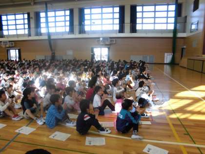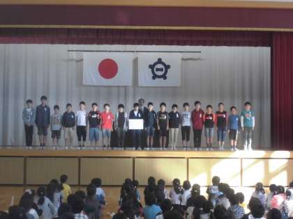先日行われてた第36回一宮サッカー選手権大会では、第3位という結果を出すことができたサッカー部の6年生全員がステージに上がり、表彰伝達を行いました。全校児童の前で、とても凛々しい表情や姿が印象的でした。本当によく頑張りました。全校児童からは、大きな拍手が巻き起こりました。