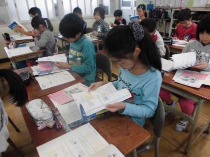 長方形と正方形の面積の求め方について学習しました。授業の終わりのまとめの時間には、全員の児童が公式について理解することができました。新しい問題集を手にして、嬉しそうな表情で、「やる気が出ます」「頑張ります」と答えてくれました。