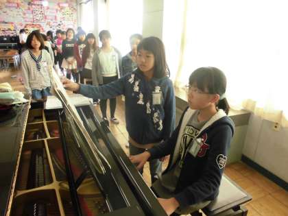 合唱練習の様子です。ピアノ伴奏に合わせ、歌詞の意味を理解して、場面の様子が伝わるように、強弱をつけながら、いい響きで歌うことができました。