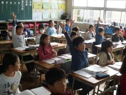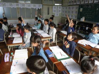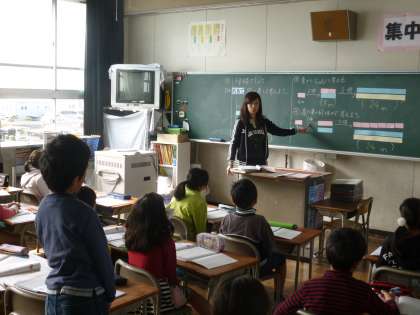「赤の車は、4メートル走りました。青の車は、赤の2倍、黄の車は、青の3倍走りました。黄の車は、何メートルはしりましたか。」という問題です。まず、青の車の距離を出して、それに3をかける方法を学習しました。それから、別の方法として、黄の車は、赤の車の6倍走ったという方法についても理解させました。
