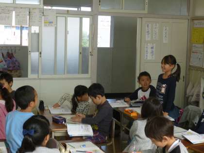 かけ算の「9の段」をマスターしよう、というめあてで学習しました。授業では、文章題にチャレンジしました。みんな目を輝かせて取り組み、式を立てたり、答えを出したりしていました。