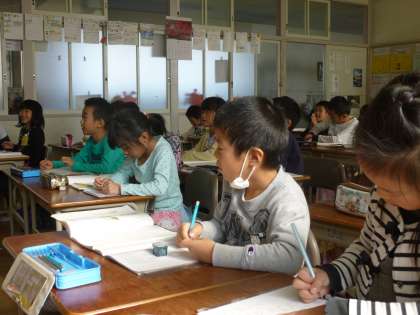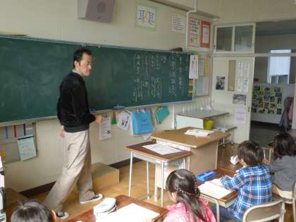 国語では、「主語と述語」について学習しています。例文を示し、主語の部分と述語の部分を確認しました。主語と述語だけで分は成り立っていることも理解させました。