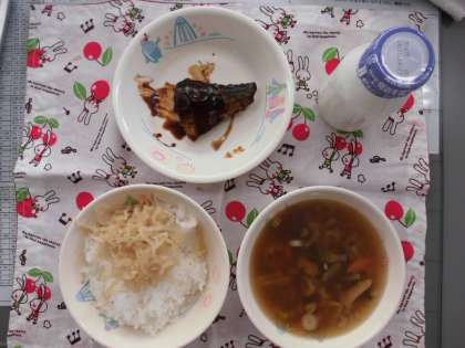 吉野汁 さばの味噌煮 ご飯 たくわん 牛乳