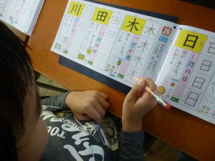 漢字ドリルを使って漢字の学習をしました。まず、漢字の読み方や書き順について説明しました。それから、直接書き込んで仕上げました。字の形や大きさにも気をつけるよう指導しました。