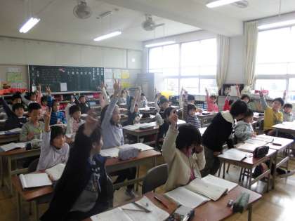 2年生の国語の授業では、漢字の読み方の違いや送り仮名について書いたり、読んだりしながら、同じ漢字でも違う読み方があることを知る。という授業を進めています。自信を持って手を挙げて、大きな声で発表することができました。ふす