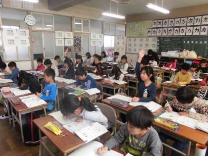 1けたをかけるかけ算の筆算について学習しました。10円玉の数え方を例にとり、自分の考えをしっかり発言することができました。