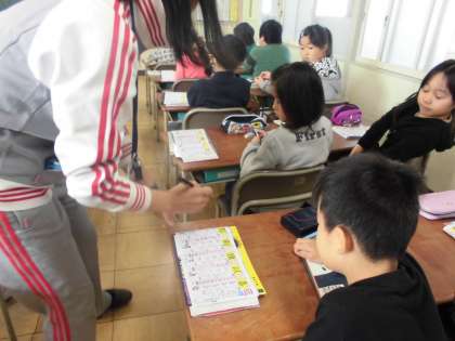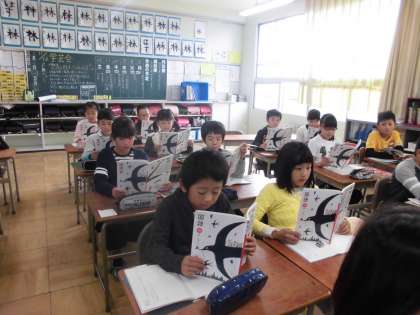 「アップとルーズで伝える」に出てくる新出漢字について、漢字ドリルを使い学習しました。丁寧な字で書くことができました。大きな赤まるをつけてもらい、とても嬉しそうな表情でした。その後、全員で音読をしました。