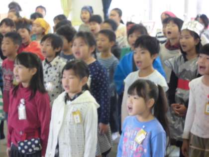 した なかよしホールから、元気な歌声が響いています。3年生の学芸会の合唱曲です。明日本番を目前にして、大きな声でみんなで心ひとつにして歌うことができました。明日がとても楽しみです。