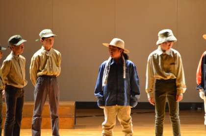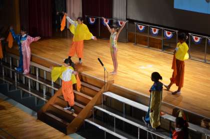 6年生は、「ぞうれっしゃがやってきた」を演じました。6年生は、見ている人に感動を届けることを目標に練習に取り組んできました。ひとりひとりが、役になりきり、気持ちを込めて演じました。また、歌で場面の様子を表現できるように頑張りました。