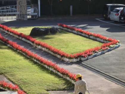 11月の中旬にもなりますが、向山小学校の希望の泉や職員玄関には真っ赤なサルビアの花が鮮やかに咲いています。毎朝園芸委員会の児童たちが花の水やりをしてくれています。そのおかげで、花たちも元気いっぱいです。