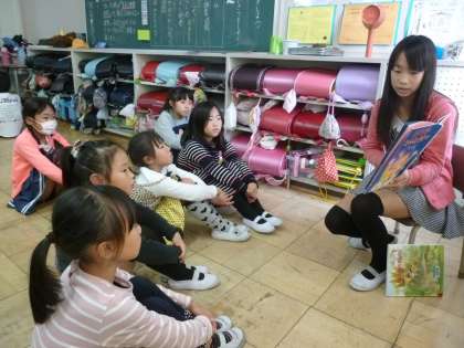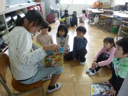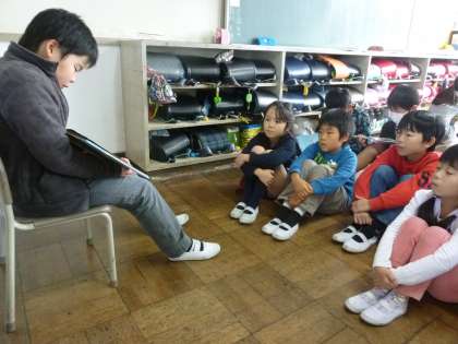 今日は、縦割り班ふれあい読書を行いました。5・6年生の子どもたちが、自分の所属する縦割り班の小さな子どもたちに読み聞かせをしました。今日にいたるまでに、本を選び、そして、練習してきました。お話を聞く側も一生懸命聞いていました。