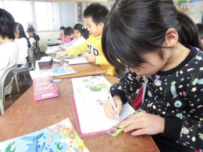 1年生の算数の授業の様子です。今日は、12−7の計算について学習しました。ノートを上手に使い、計算の仕方について理解することができました。