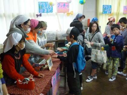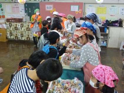 クッキーコーナーでは、お母さまたちが手作りしてくださったクッキーを販売しています。子どもたちに大人気の一品です。ここにも長い列ができました。