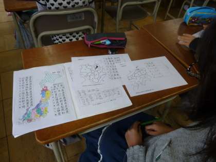 都道府県名の学習をしています。今日は、中国・四国地方を確認していきました。都道府県の名前や位置を覚えることは、社会科の学習の基礎となります。様々な機会を通して、きちんと頭に入れてほしいと考えています。