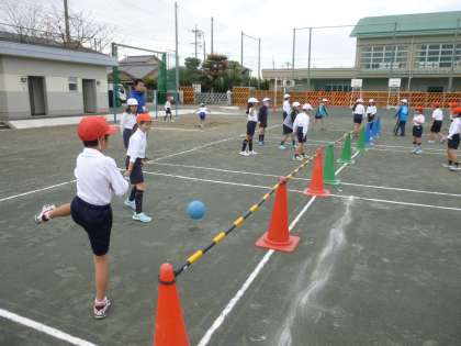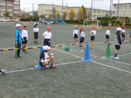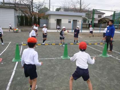 体育で「プレルボール」という学習をしました。聞きなれない名前ですが、バレーボールへ発展していくような競技です。ただ、ボールを上にトスするのではなく、地面にバウントさせて、相手コートに返していくというスポーツです。